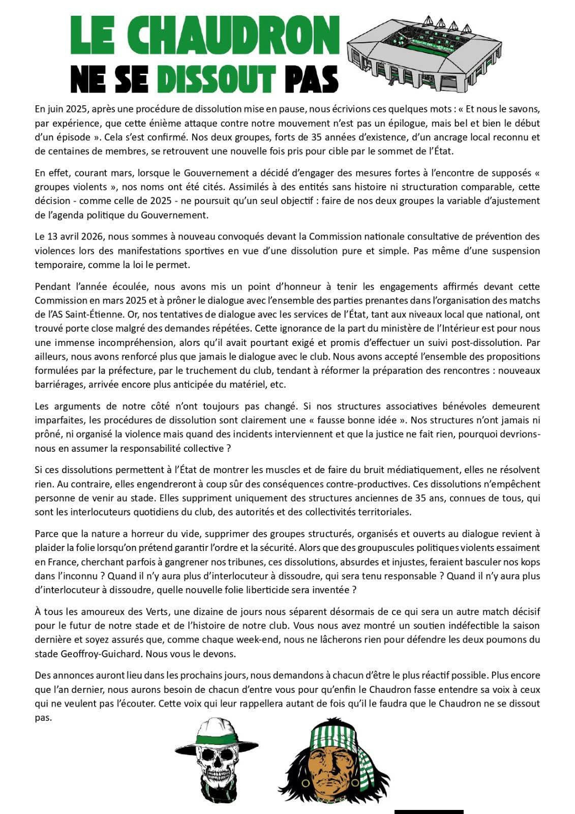 Le Chaudron ne se dissout pas ! By patavo 26 Posté le 2 avril 2026 In Actualités 0 Le Chaudron ne se dissout pas ! Communiqué commun des Magic Fans et des Green Angels.